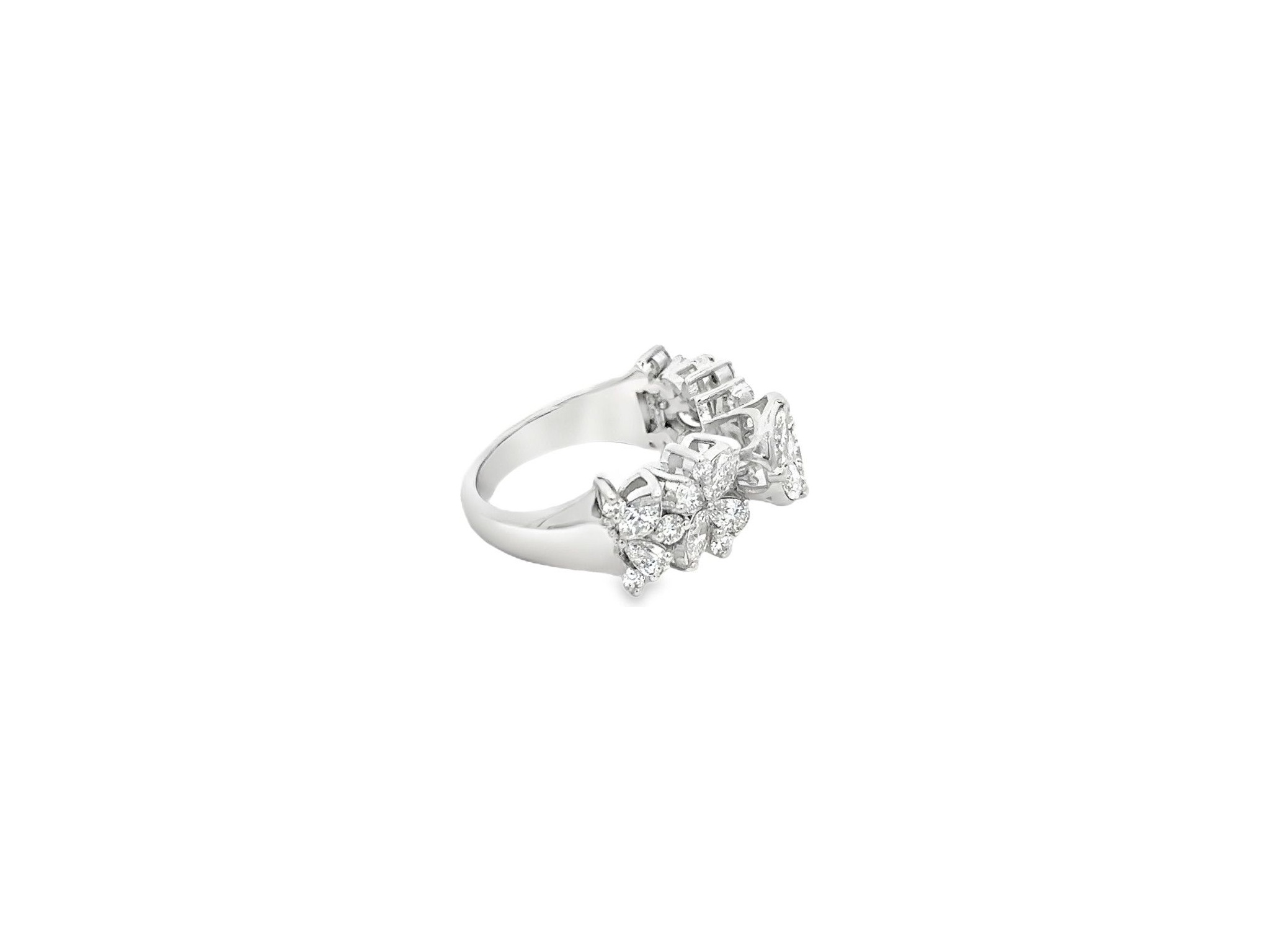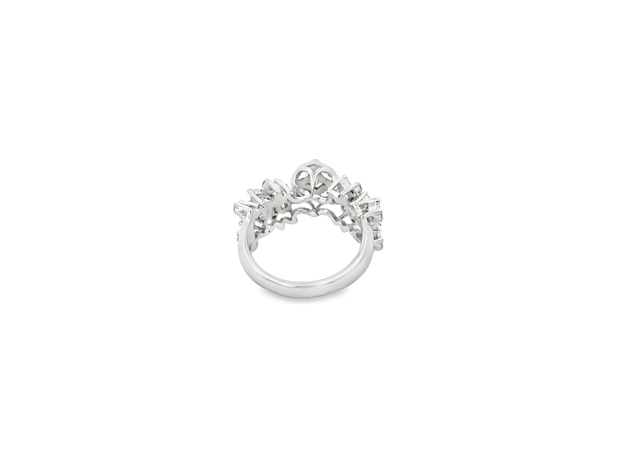 18K White Gold Ring with Natural Marquise, Pear, Round, and Princess-Cut Diamonds in Floral and Cluster Design