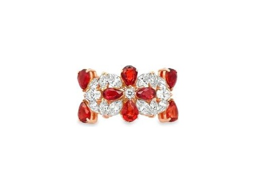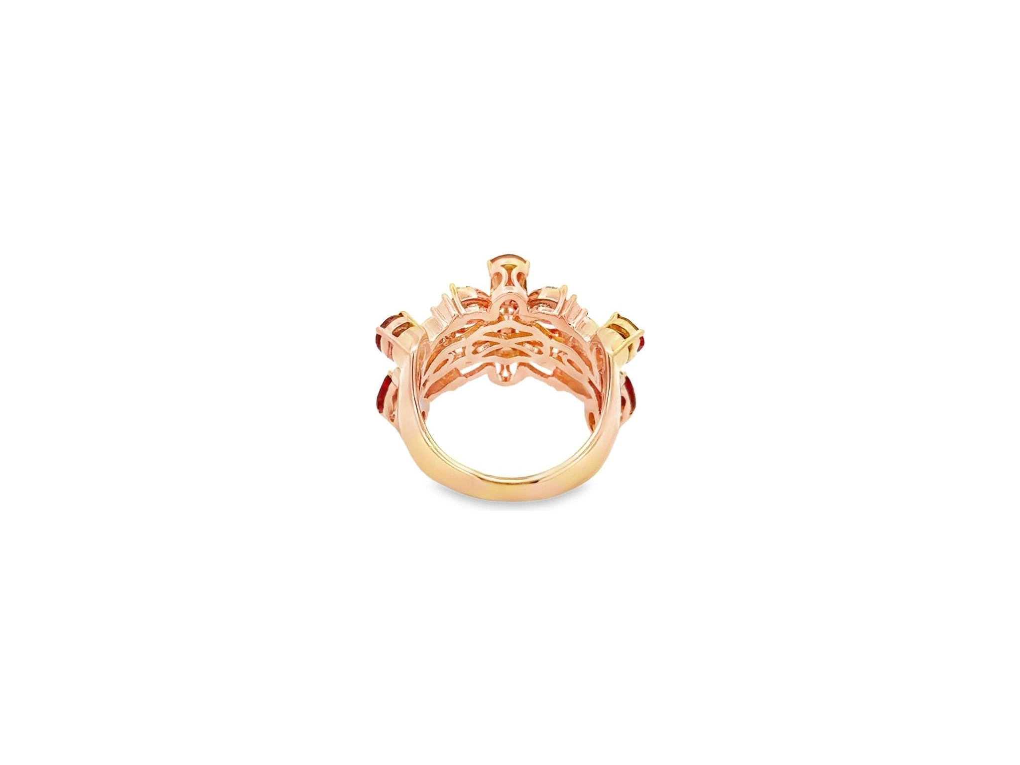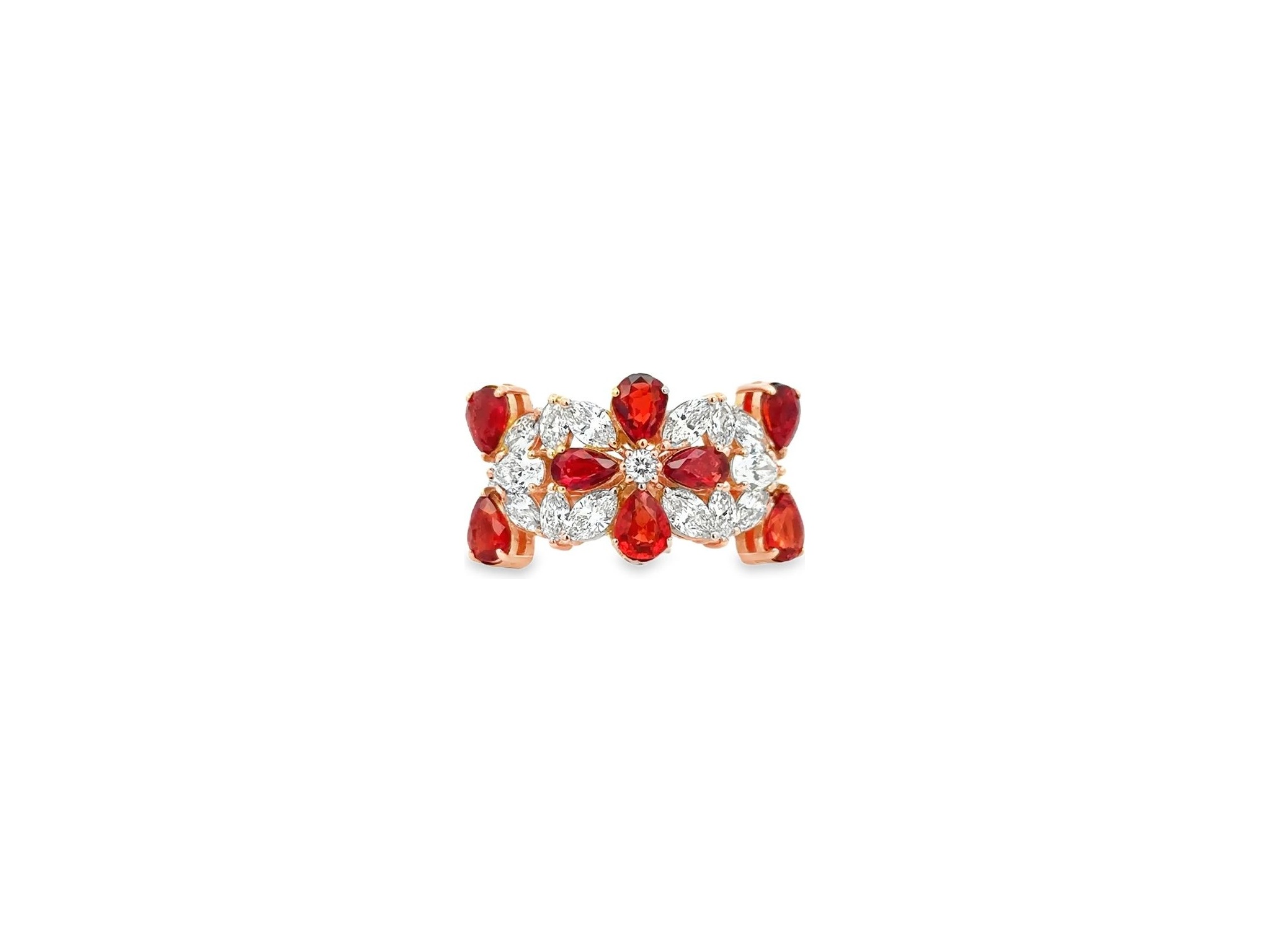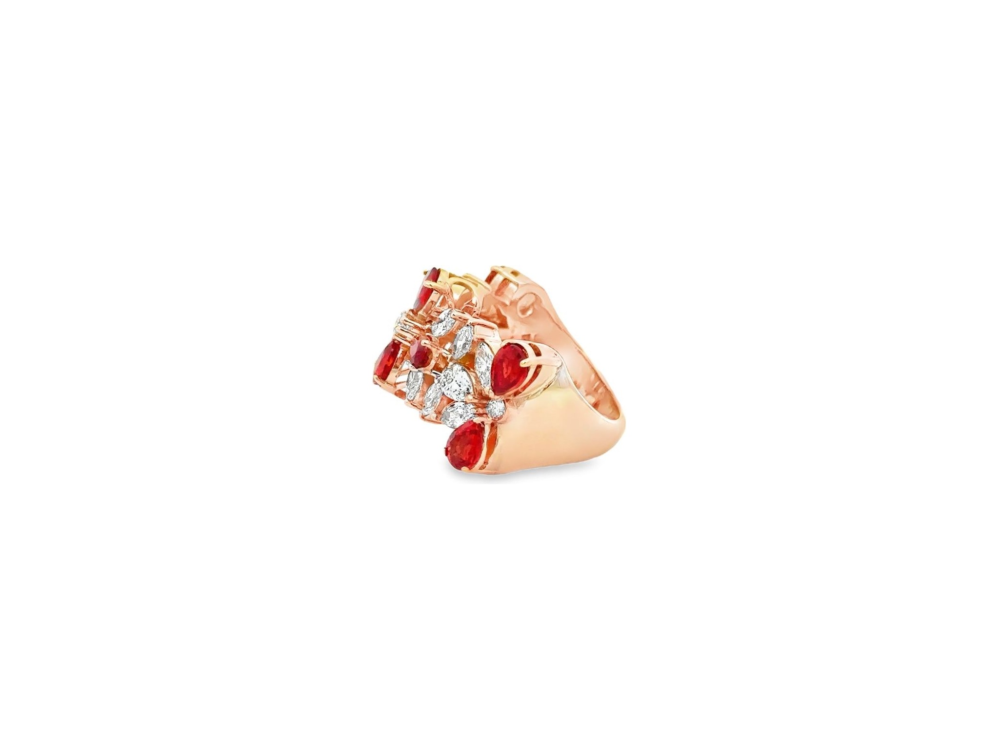 18K Rose Gold Natural Red Ruby and Natural Diamond Cluster Ring with Pear, Marquise, and Round Cuts