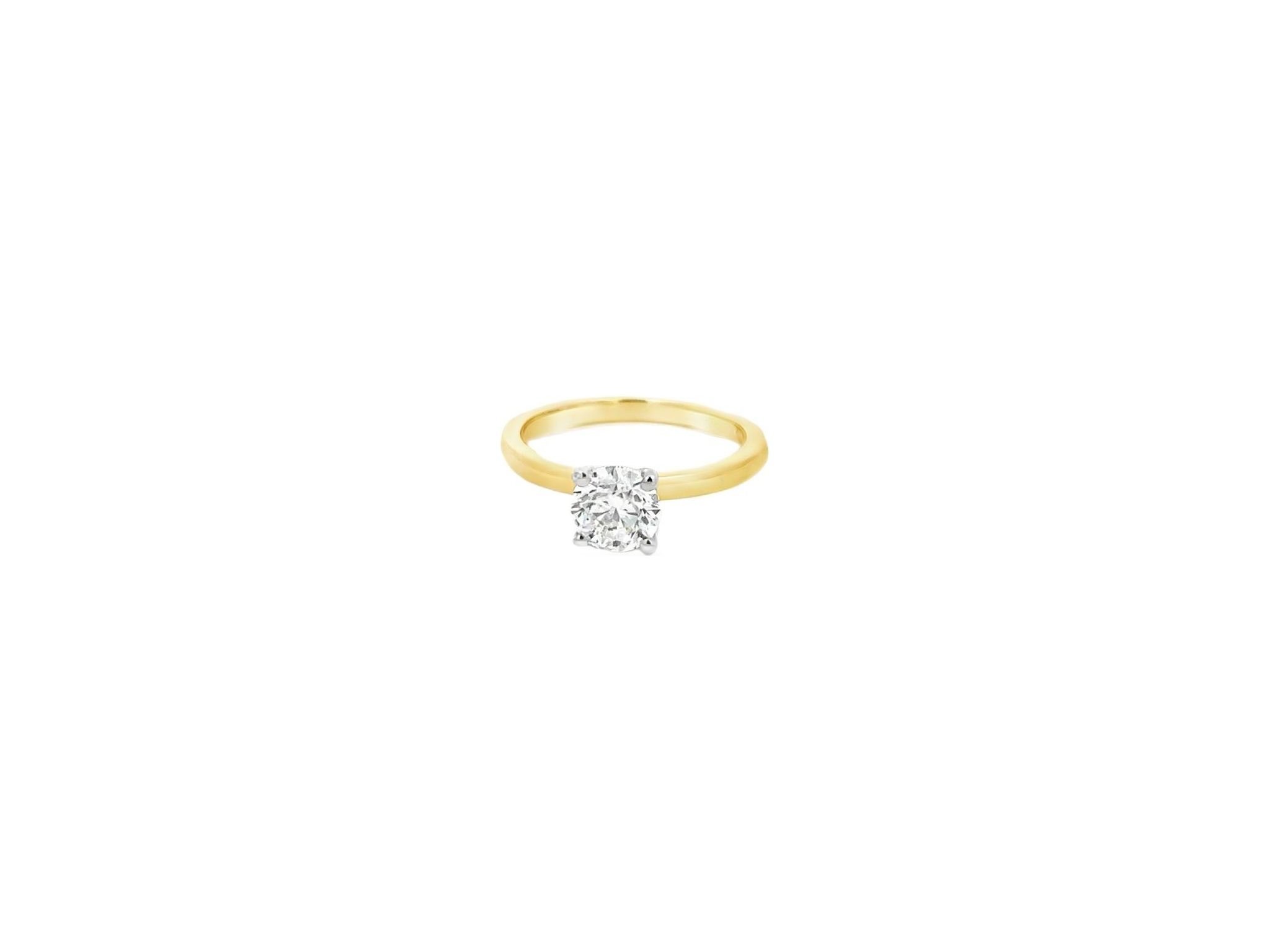 1 Carat Round Cut Natural Diamond Ring in 18K Yellow Gold